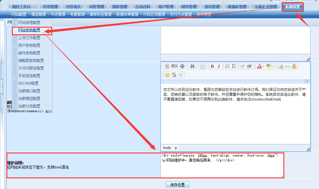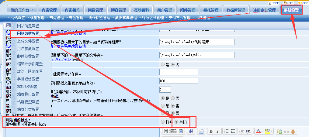 默认读取”维护说明’的内容显示在前台页面。可以在此修改显示的文字与格式。