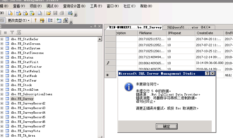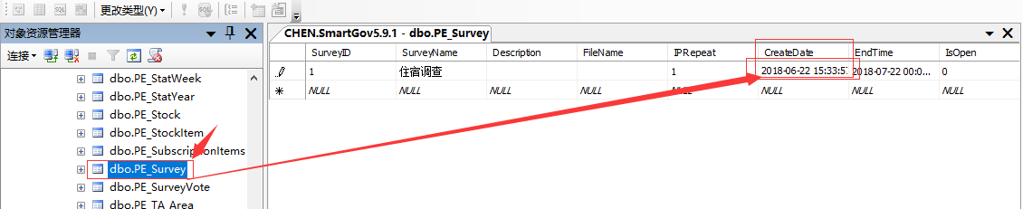 解决方案:如图所示,直接修改PE_Survey表的CreateDate字段里面的日期:
