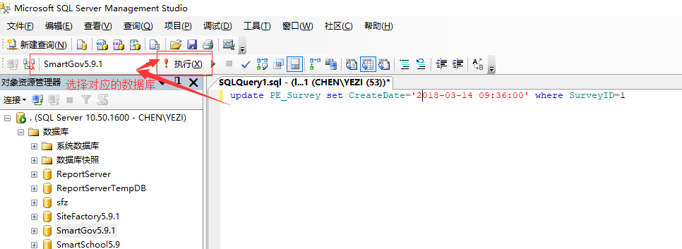 update PE_Survey set CreateDate='修改后的时间' where SurveyID=问卷调查对应的ID号