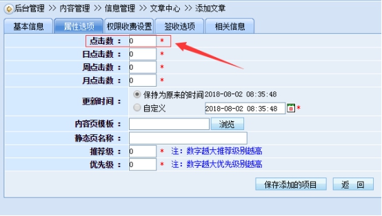 在添加文章时我们会遇到修改起始的点击数,最开始遇到这个问题感觉无从下手,明明是很简单的东西,大家都知道。似乎技术中心还没具体写过,这里写一下简单步骤。