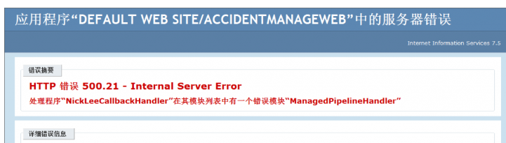 HTTP 错误 500.21 - Internal Server Error处理程序“PageHandlerFactory-Integr”在其模块列表中有一个错误模块“ManagedPipelineHandler”