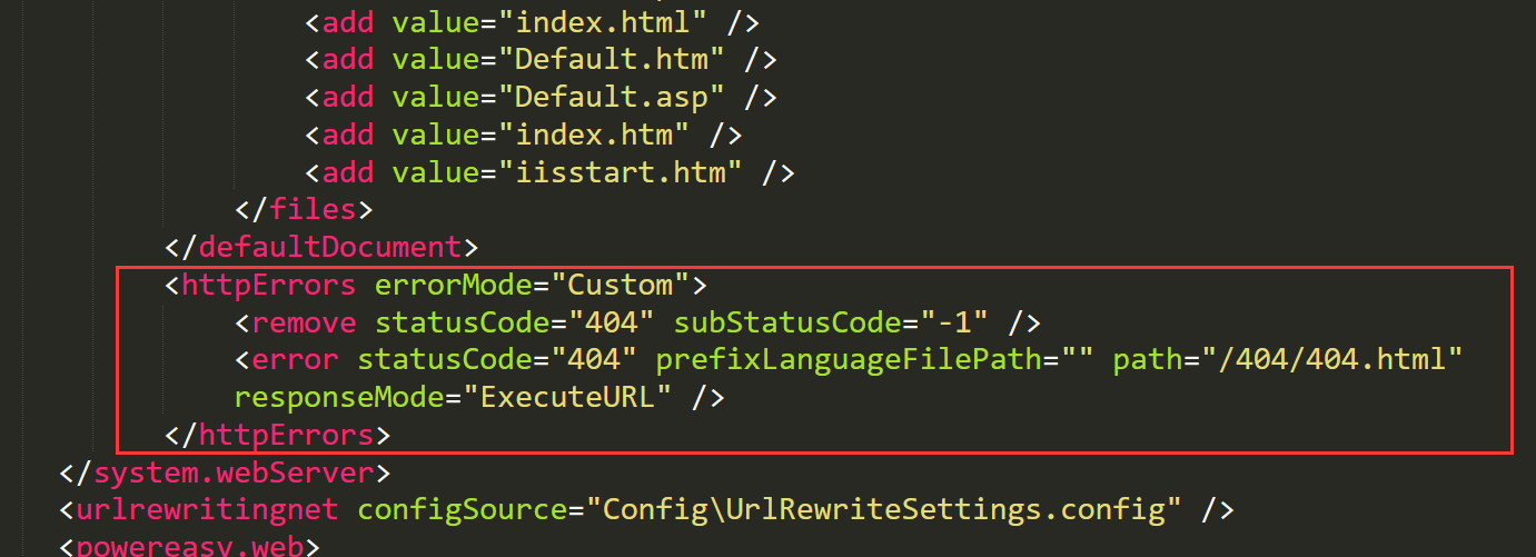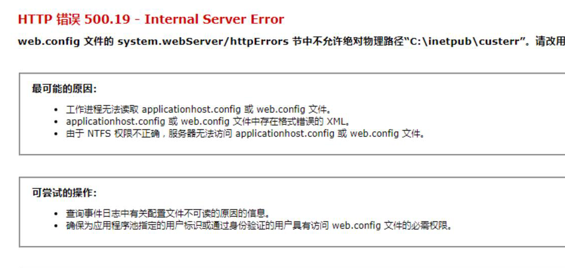 web.config文件的system.webServer/httpErros节中不允许绝对物理路径的问题处理