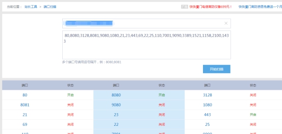 若本地能访问而域名不能,使用端口扫描检查端口是否开启
