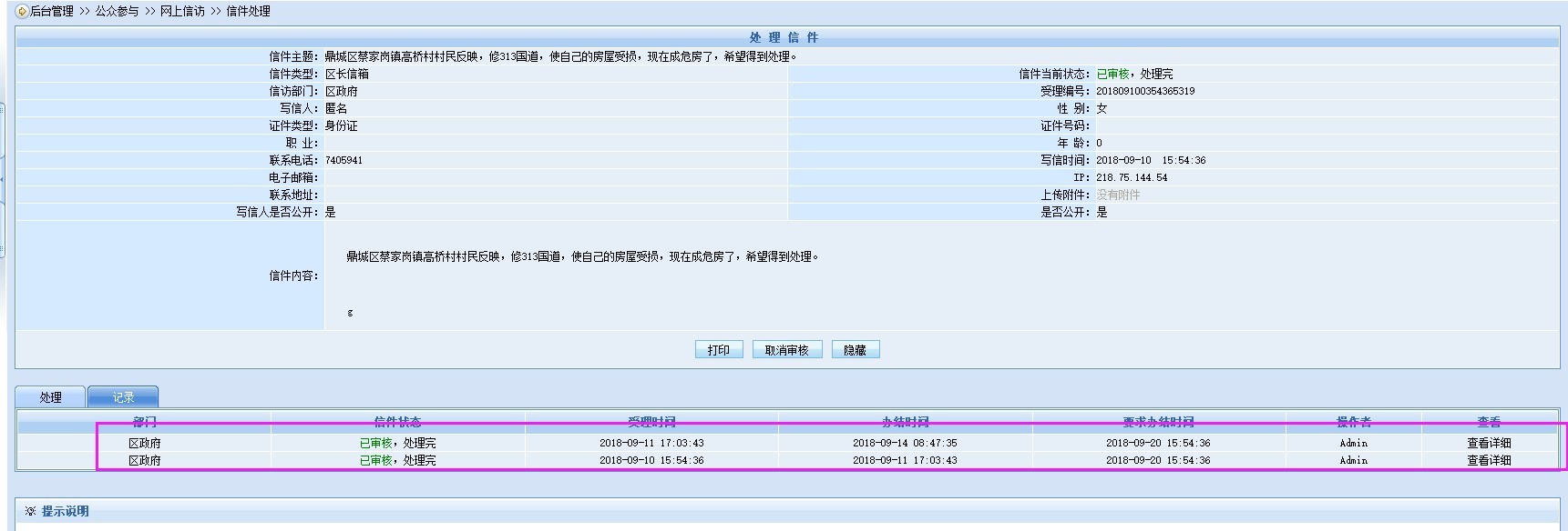 在sg版本中,回复信访的处理记录无法在后台删除,此时只能通过数据库来进行删除