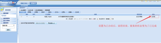 第二步、将该提案设置为已办结