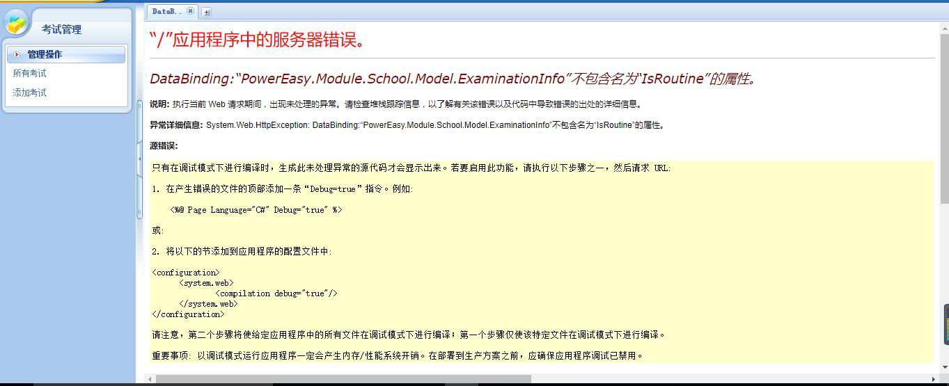 问题 :sf5.9.1版本点击校务管理下的考试管理出现错误,错误如图所示