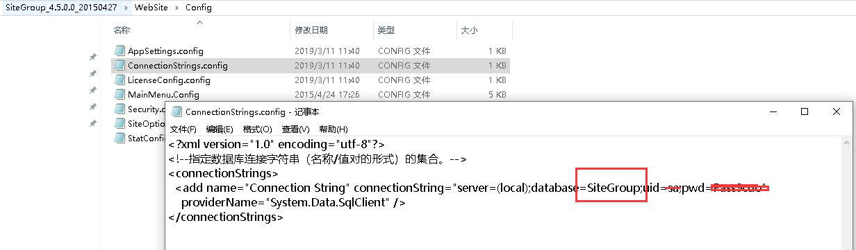 先通过config文件夹下面的ConnectionStrings.config文件找到数据库名称