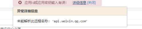 接入微信公众号,提示“未能解析此远程名称:‘api.weixin.qq.com’”