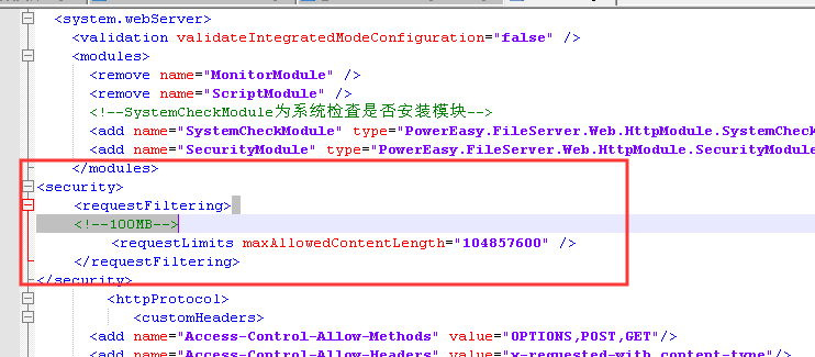 在文件服务器根目录的web.config文件中,找到system.webServer节点,添加: