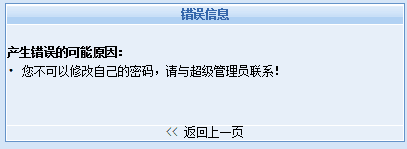 问题描述:超管登录后台出现报错“您不可以修改自己的密码,请与超级管理员联系!”