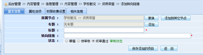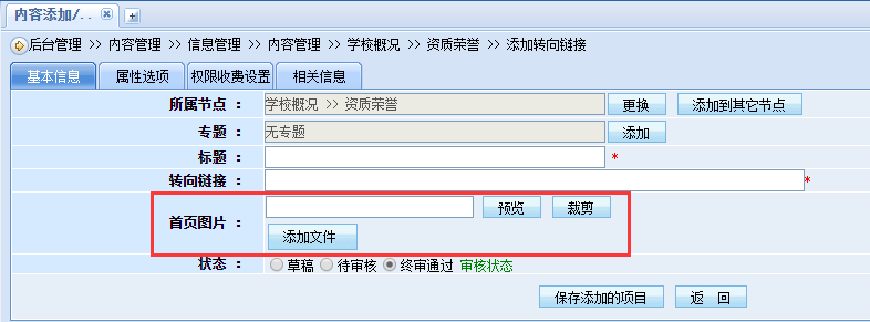 切换回添加转向链接页面,看到“首页图片”字段显示出来。