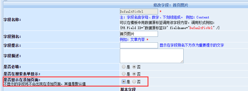 是否显示在添加页面,选择是。