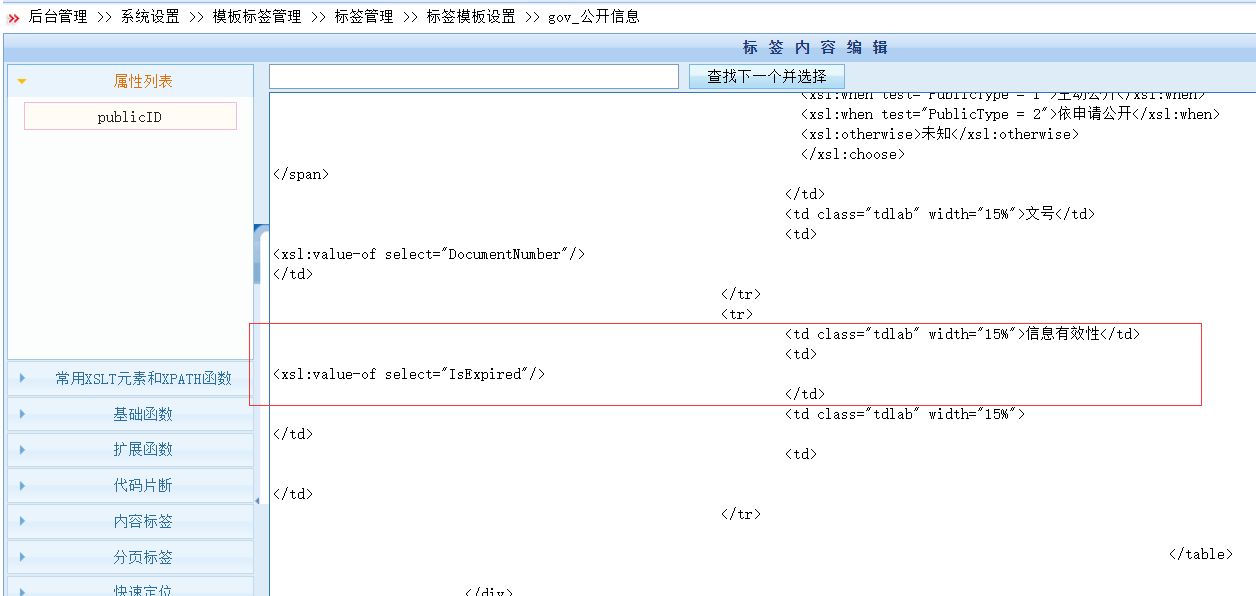 我们找到对应的输出标签,发现这个是字段直接输出的,我们需要增加一个判定即可,默认的0值输出为有效,其他值输出无效。