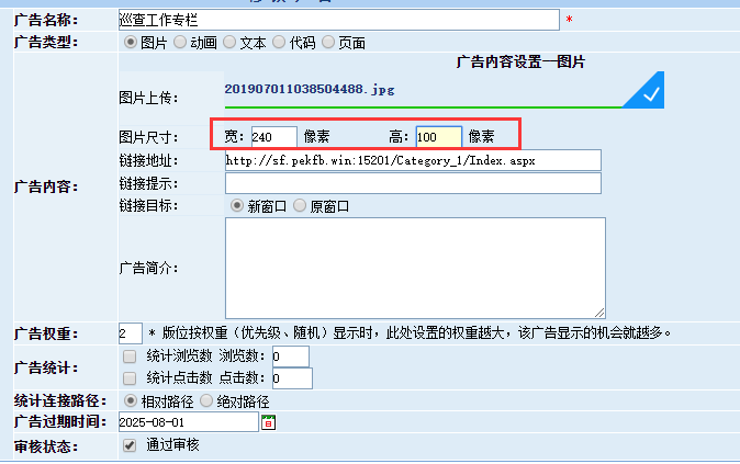 问题所在:原来我们在在添加广告管理的时候,有时候在广告管理填写图片的尺寸的宽和高,而,又在广告版位指定了宽高,这个时候会导致版位尺寸的大小跟广告管理的大小不一致,导致关闭按钮会按照广告版位的图片大小的显示,而图片按照广告管理的时候显示这样会导致图片跟广告版位大小不一致,导致图片偏移,这时候可以删除掉广告管理添加的的宽和高,或者调整广告管理和广告版位添加的宽和高一致。