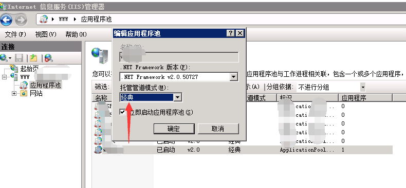 说明: 执行当前 Web 请求期间,出现未经处理的异常。请检查堆栈跟踪信息,以了解有关该错误以及代码中导致错误的出处的详细信息。 异常详细信息: System.PlatformNotSupportedException: 此操作要求使用 IIS 集成管线模式。源错误: