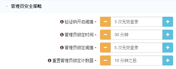 验证码开启阈值:在管理员锁定阈值不为0的情况下,验证码开启阈值必须少于或等于管理员锁定阈值。