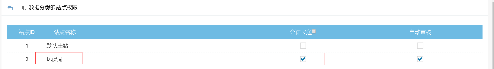 同时给予该数据分类的站点权限,也就是允许某些子站进行报送: