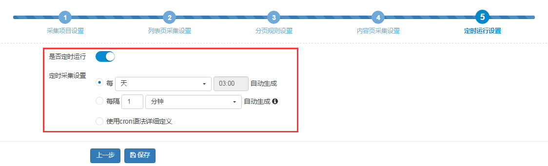 在采集定时里面可以根据实际要求配置每天,或者每周等特定时间段进行数据自动采集。
