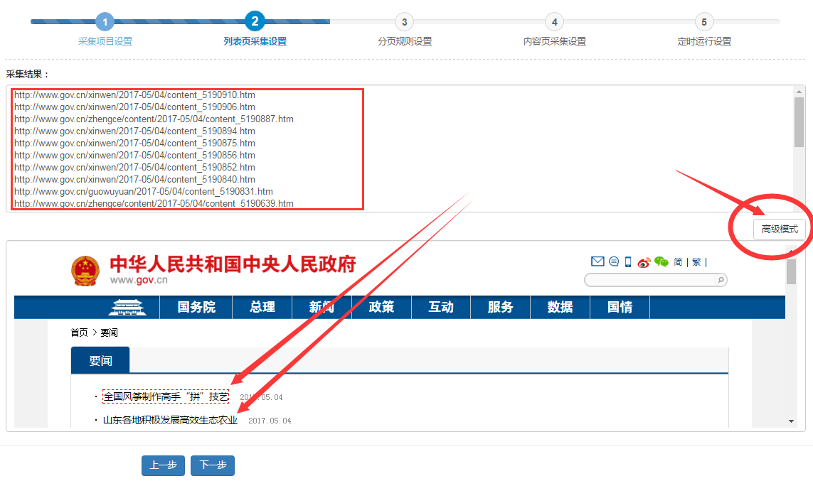 当然,有需要的话,还可以点击高级模式进行采集规则设置。