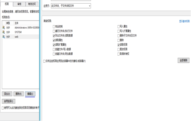 第二步编辑权限:每个文件夹单独配置后访问正常。配置如下图所示: