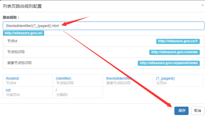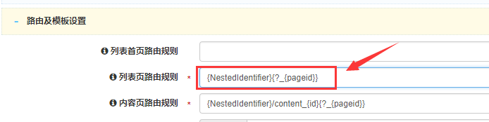 3、到节点的路由设置里面配置好路由规则(以列表页为例):