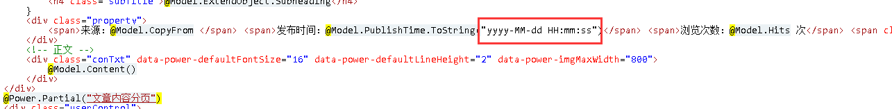 改为:发布时间:@Model.PublishTime.ToString("yyyy-MM-dd HH:mm:ss")