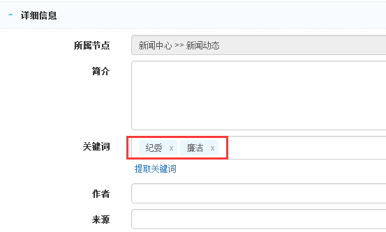其次还需要在编辑内容的时候,设置关键字,目前是通过关键字进行匹配。