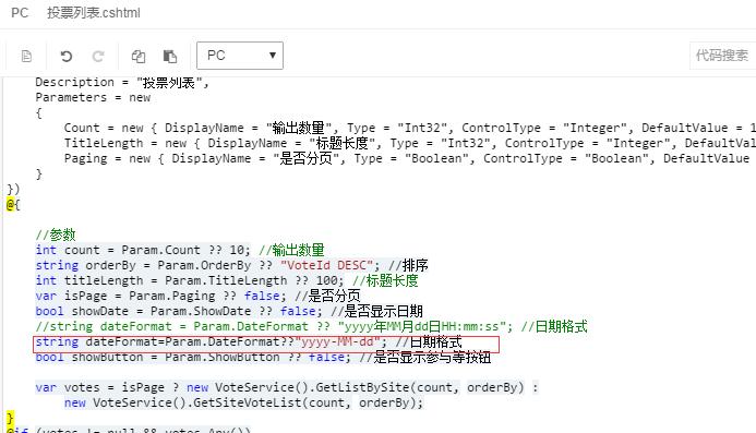 (1)找到投票列表标签,日期格式参数,改成如图所示