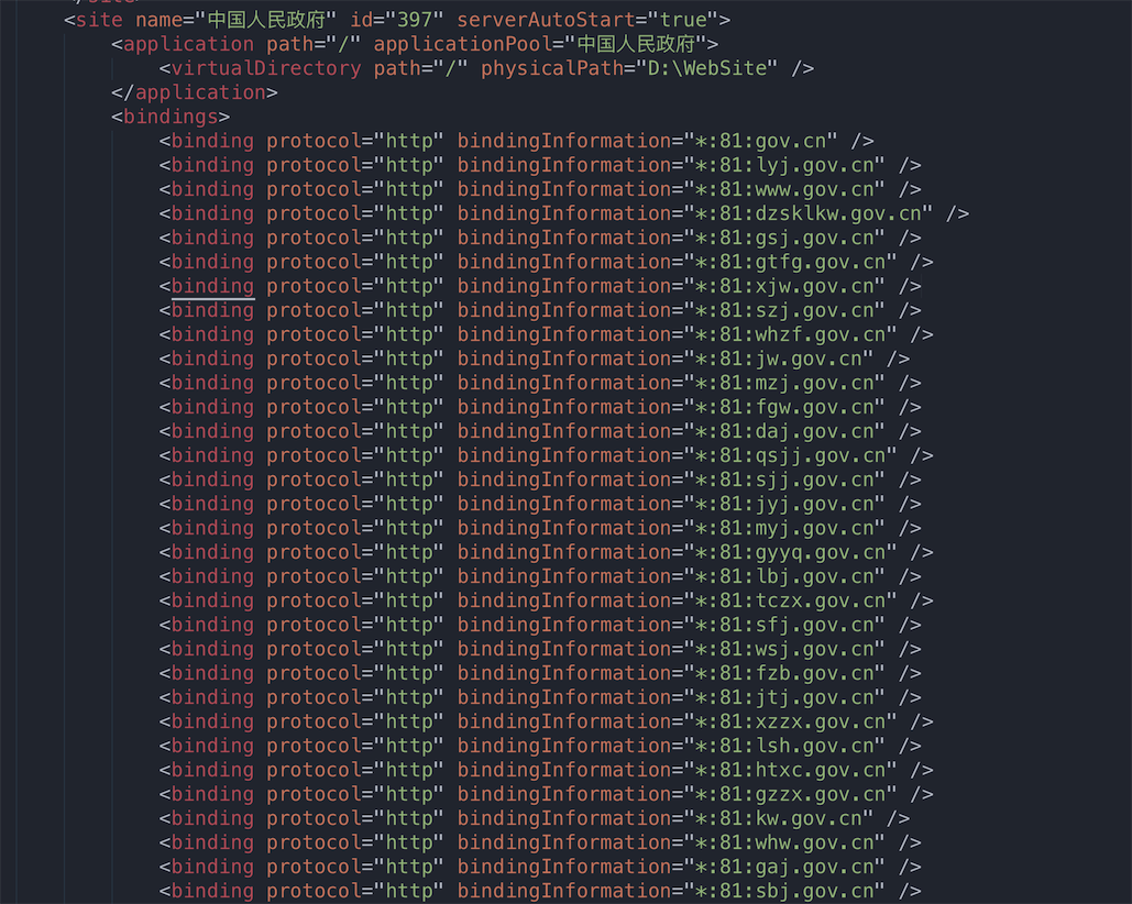 1.找到backup目录下的applicationHost.config 用sublimeTxt打开。