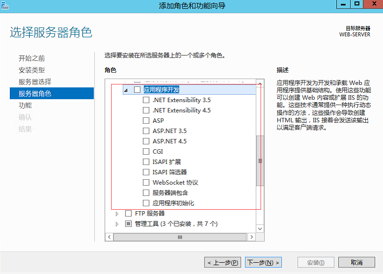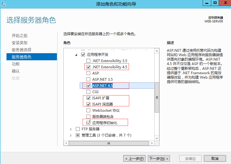 如下图勾选功能,安装好之后重启一下服务器即可。