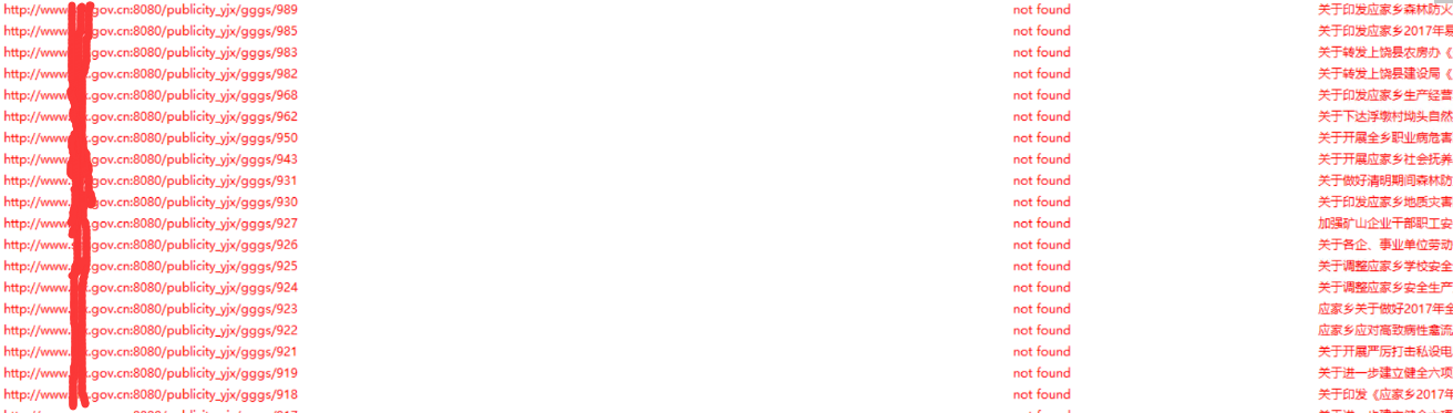 问题分析:观察发现 ,这些错误集中“http://域名/publicity_yjx/gggs/****”,publicity这个路径表示它来自信息公开,其后两个是主题。那么我们可以推测,有可能是主题更改标识符,而在系统缓存机制下,没有更新到新的标识符,所以导致路径错误。