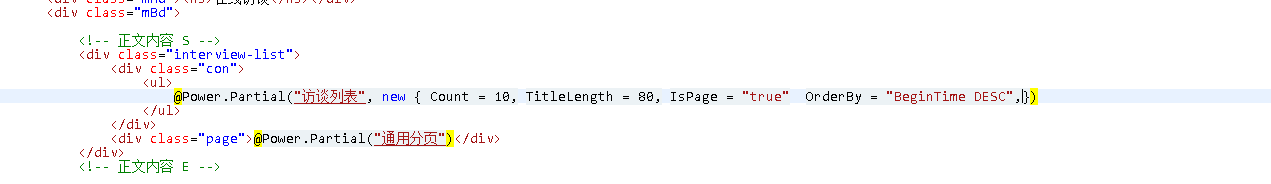然后找到“访谈列表”的标签,通过OrderBy = "BeginTime DESC"(开始时间降序)参数修改排序方式