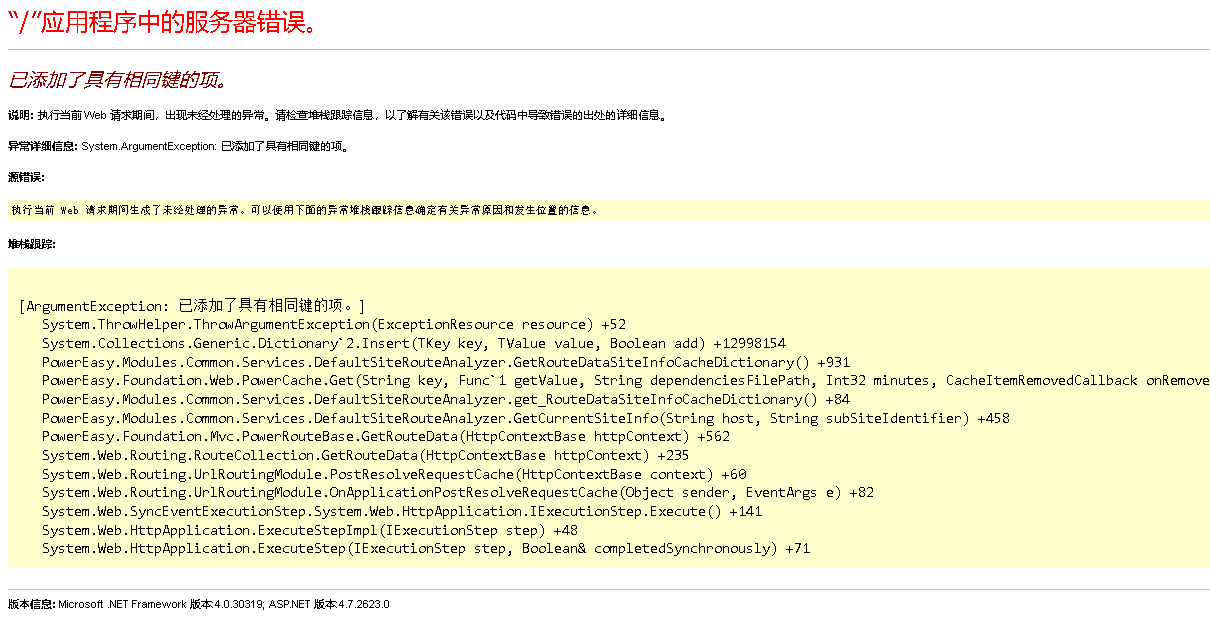 此错误出现一般分为几种情况:节点标识符重复、站点标识符重复、自定义域名与已配置的跟域名重复