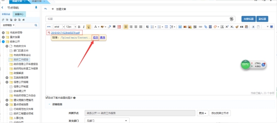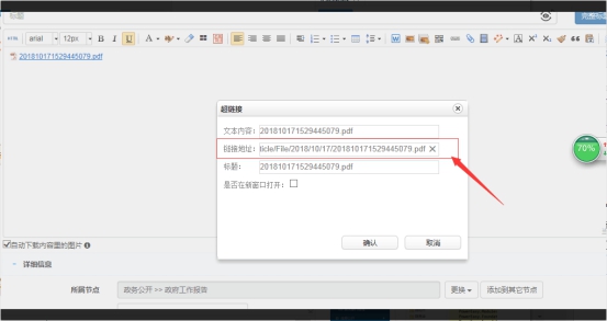 如何实现直接打开文章内容页预览PDF 来源:本站原创 点击数: 次 发布时间:2018年11月02日 需要达成的效果如图:列表页点击列表直接是PDF预览 操作如下: 先创建一篇文章 然后到需要添加文章的栏目,选择添加链接文章,将之前弄好的pdf文件链接填入即可。