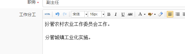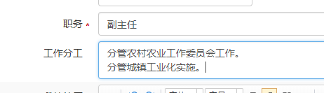 在sa里有个比较细节的地方,往往领导内容页上有个工作分工(有些地方政府称之为领导职责),很多时候一个领导身兼多职,在工作分工里需要换行介绍。