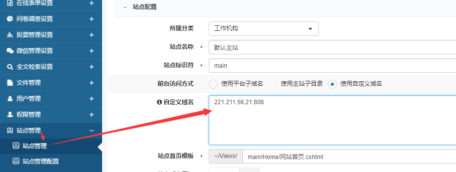 平台的站点管理也做了配置,