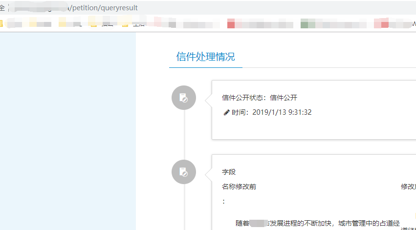 一般前台信件查询时会查到整个信件的处理流程记录