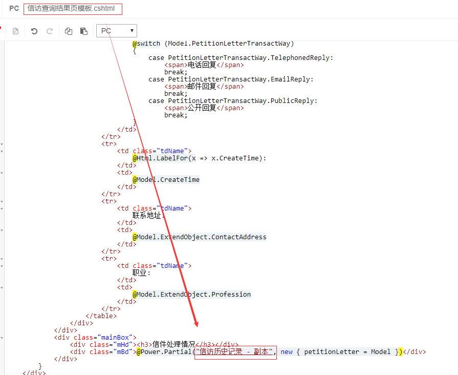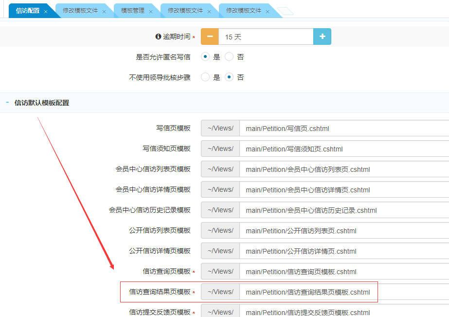 3、在信访查询结果页模板的信件处理情况这里调用上传的标签