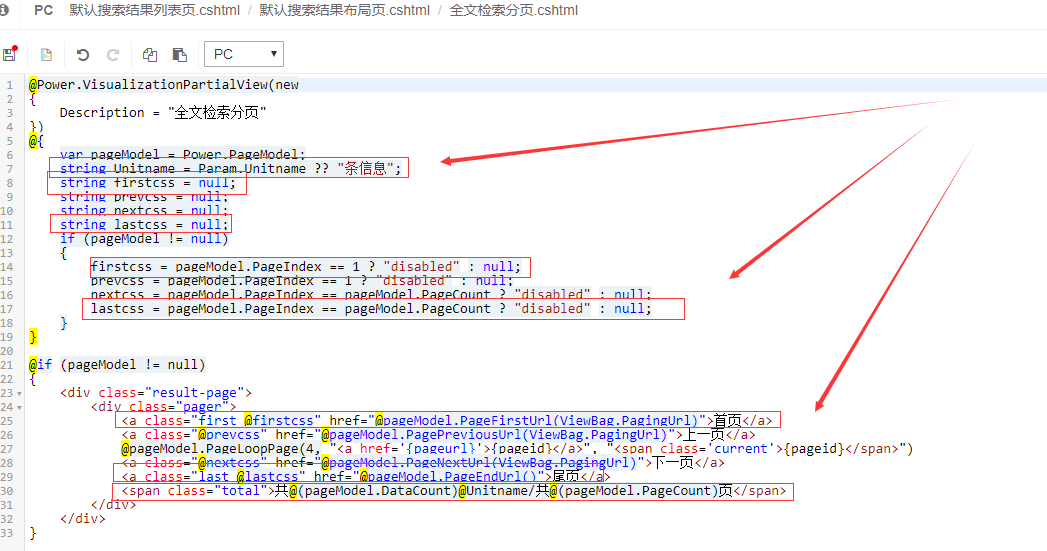 找到全文检索分页标签(可以借鉴通用分页标签的写法),按照如图修改