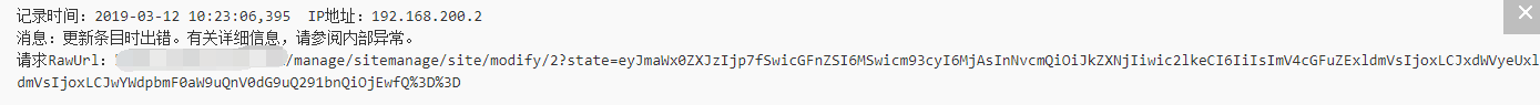 系统后台无法添加和修改子站,提示“服务器错误”,异常日志显示