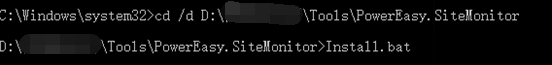 3、而后将CMD中的路径调整到Install.bat文件所在路径下,切换指令为cd /d。