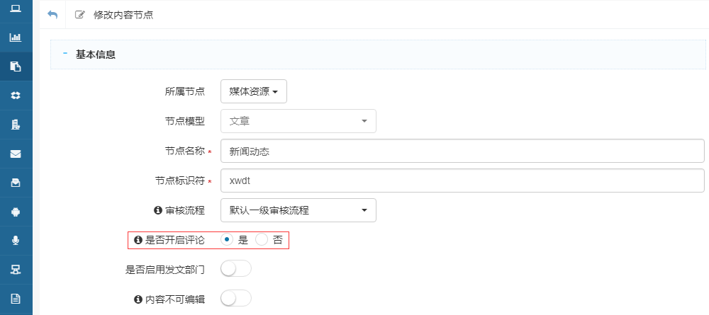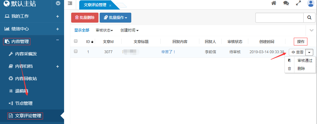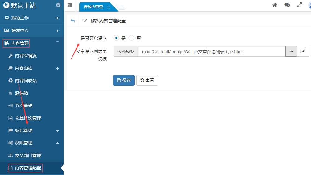 一篇文章需要设置允许评论需要三个步骤,首先需要内容管理配置下开启允许评论。