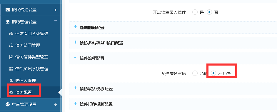 但是有时会发现信件详情页面没有这个按钮,原因为要在平台中关闭匿名写信,也就是必须禁止匿名写信,才能退回给写信人: