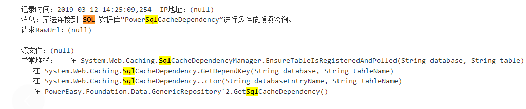 日志提示无法连接到SQL数据库"PowerSqlCacheDependency"进行缓存依赖项轮询