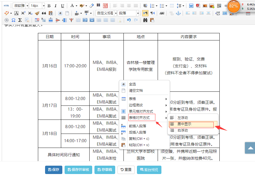 问题描述:编辑器中上传word文档,发现上传后的表格不居中显示。