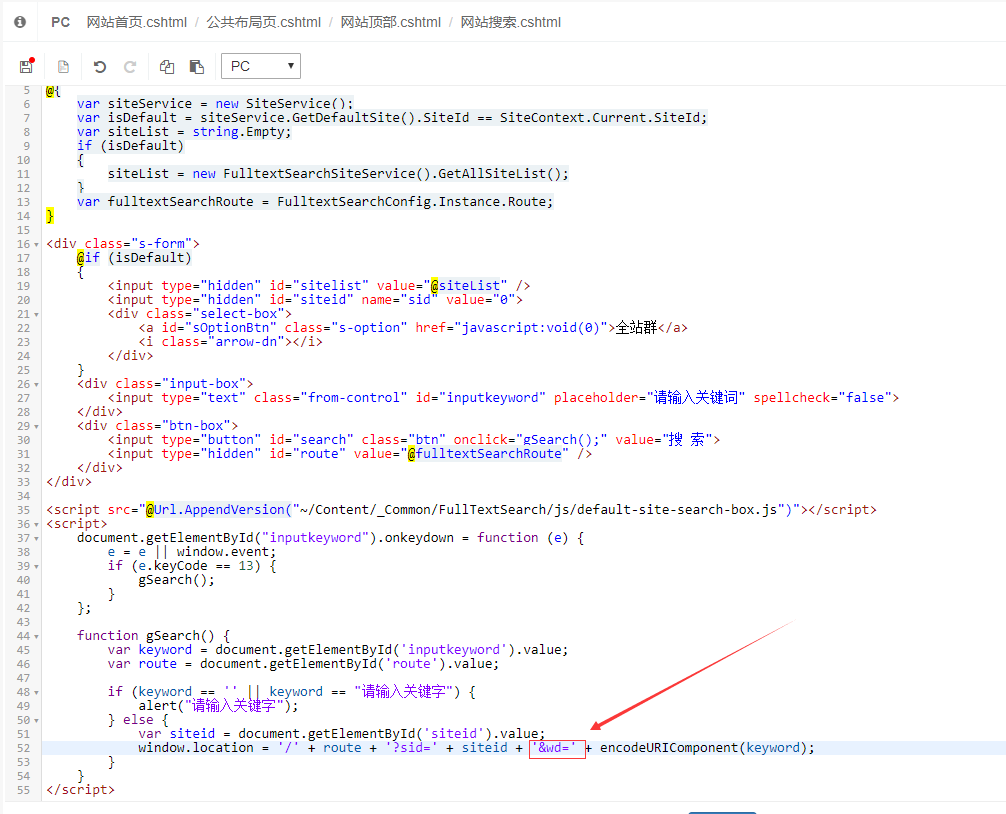 因为首页搜索跟全文检索结果搜索页搜索的按钮事件不一样,所以修改时两处地方的按钮事件都需要稍微调整一下