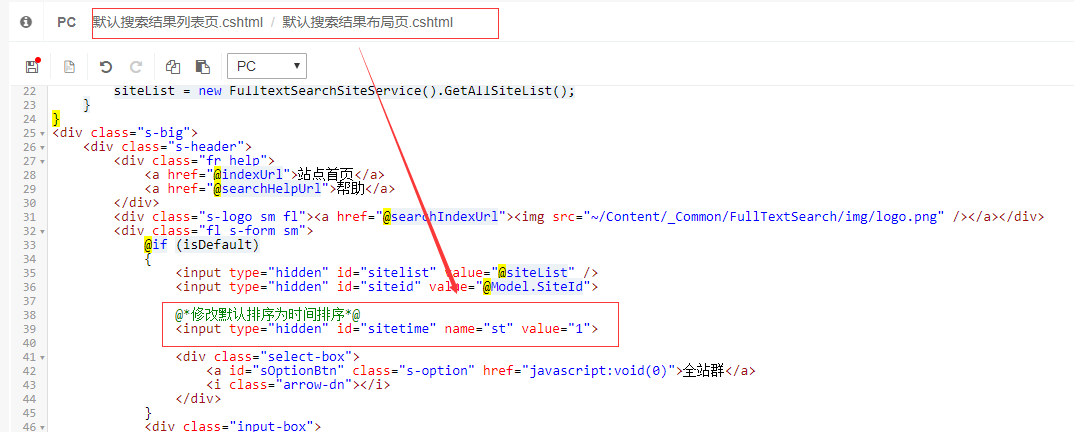 SiteAzure默认搜索的排序方式是按照相关度排序,如何将默认排序方式改成时间排序呢?