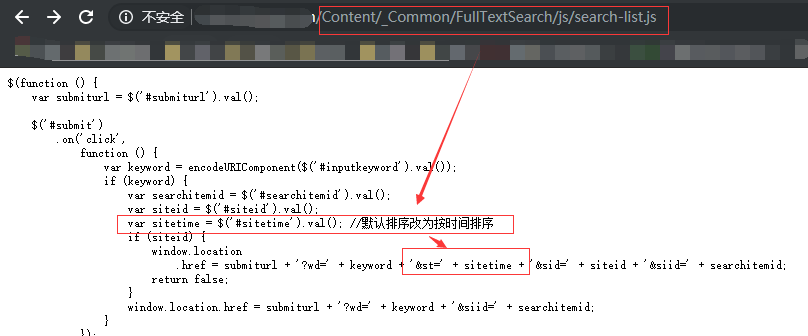(2)找到search-list.js,修改如图即可全文检索搜索结果页点击搜索按钮时搜索出来的结果按照时间排序