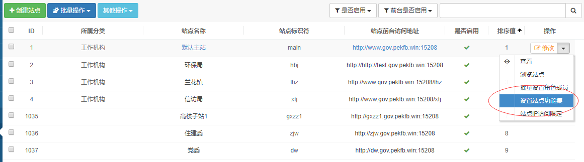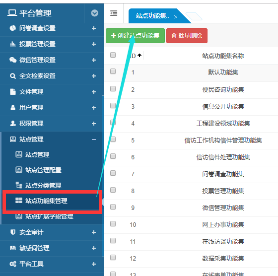 1、创建站点功能集,选择需要的功能菜单