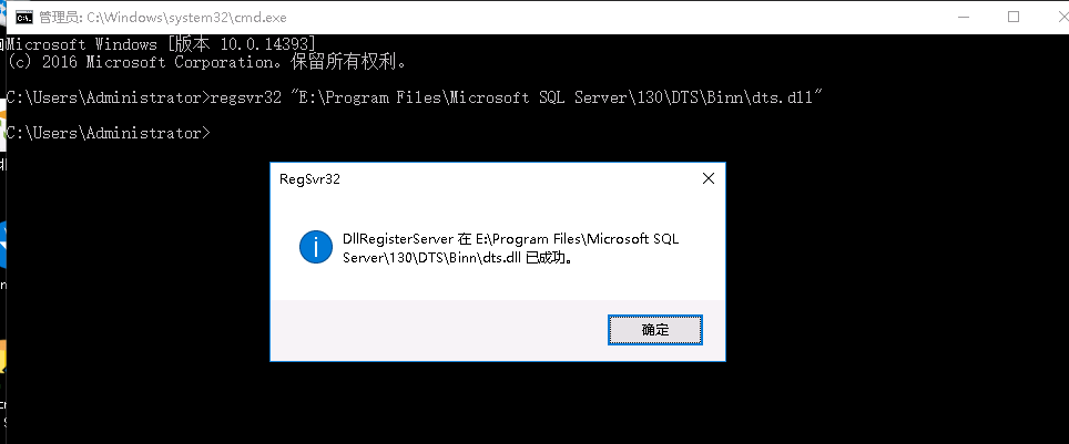 问题解决:查询资料得知,是由于先安装了ssms管理工具,后安装sql引起,重新注册dts.dll即可,如下图: